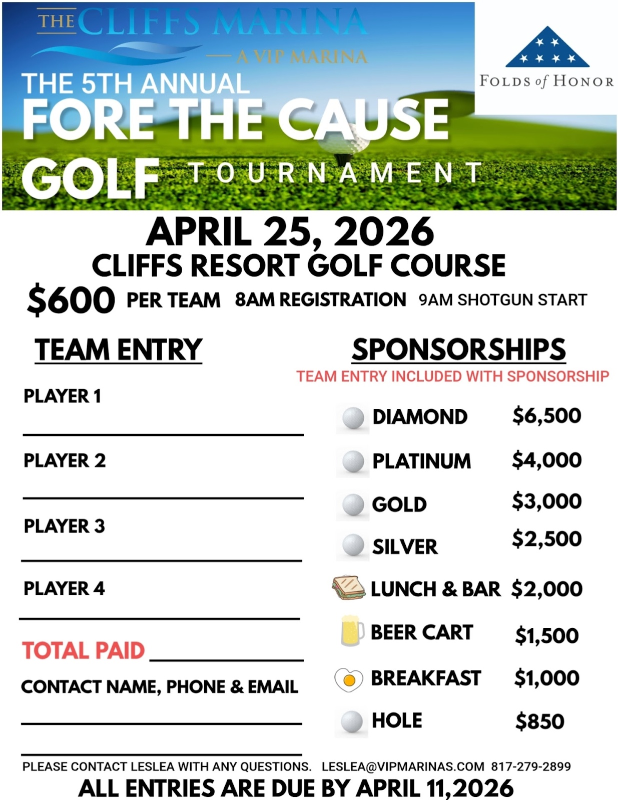 The Cliffs Marina Folds of Honor Golf Tournament – April 25